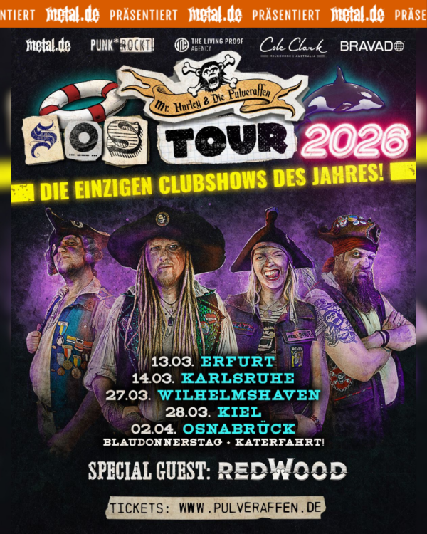 Bei den exklusiven Clubshows für 2026 wird die Piratenbande tatkräftig von REDWOOD, KATERFAHRT und BLAUDONNERSTAG unterstützt.