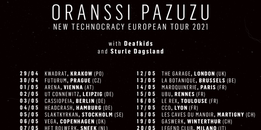 | 01.05.21 | Arena Wien, Wien Oranssi Pazuzu und Sturle Dagsland |