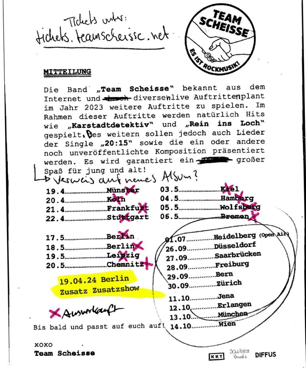 Team Scheisse - Deutschlandtour 2023 Tourdaten