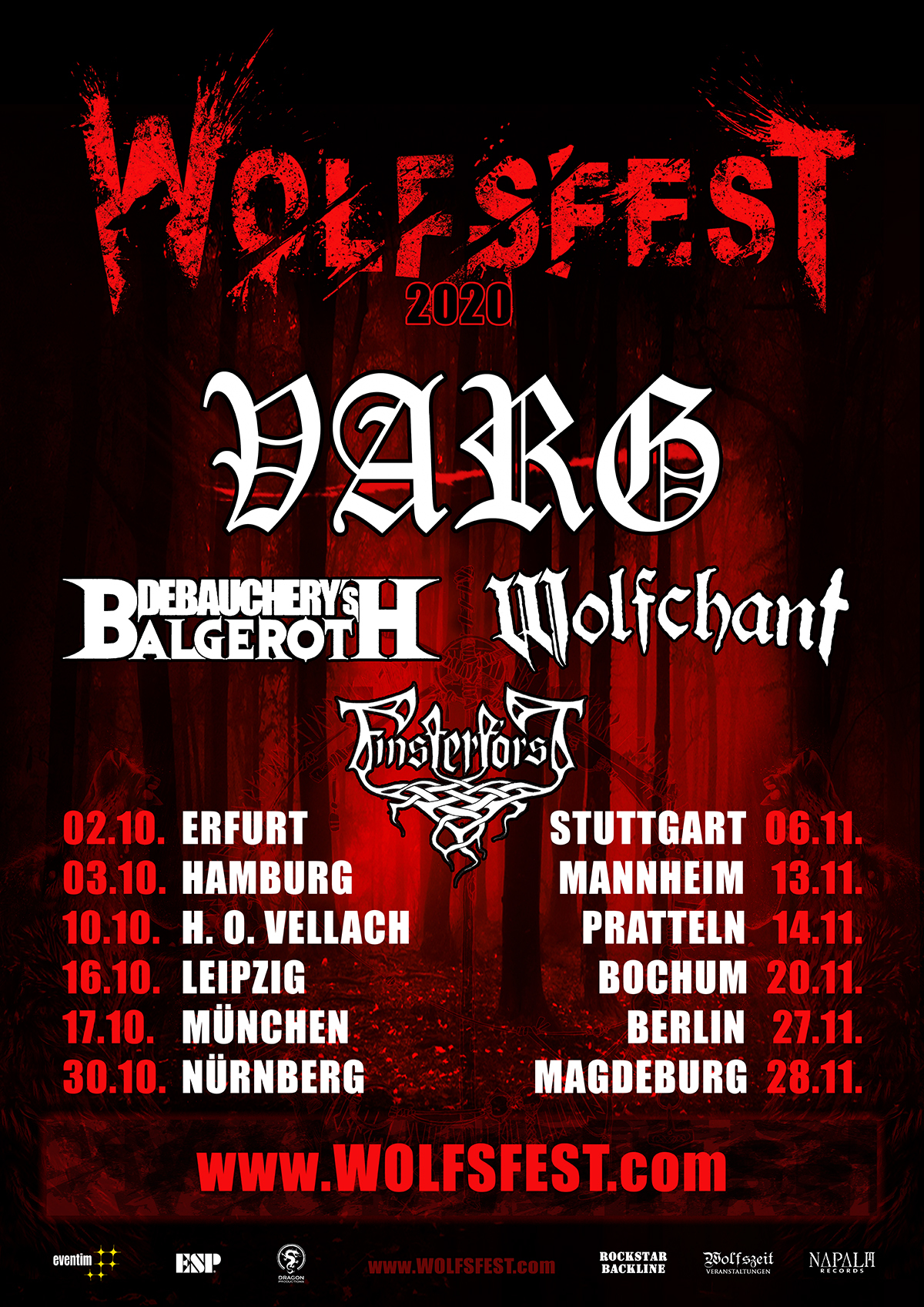 | 17.10.20 | Backstage München, München Varg, Debauchery's Balgeroth, Wolfchant und Finsterforst |