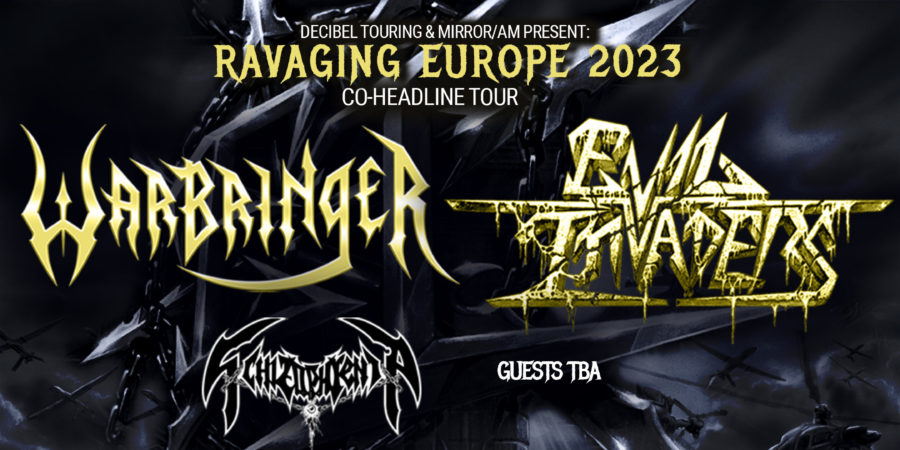 Thrash-Metal-Fans aufgepasst! WARBRINGER und die EVIL INVADERS kommen auf große „Ravaging Europe“-Tour und bringen SCHIZOPHRENIA als Special Guest mit. Supports werden noch zu gegebener Zeit bekannt gegeben. Steigen wird die Sause von Ende März bis Ende April 2023, es befinden sich auch einige deutsche Termine unter den Tourdaten, welche ihr auf dem unten angehängten Flyer studieren könnt.